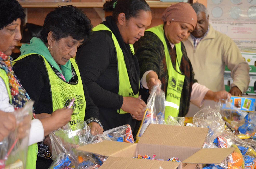 Packing 1200 party packs for our children to take home