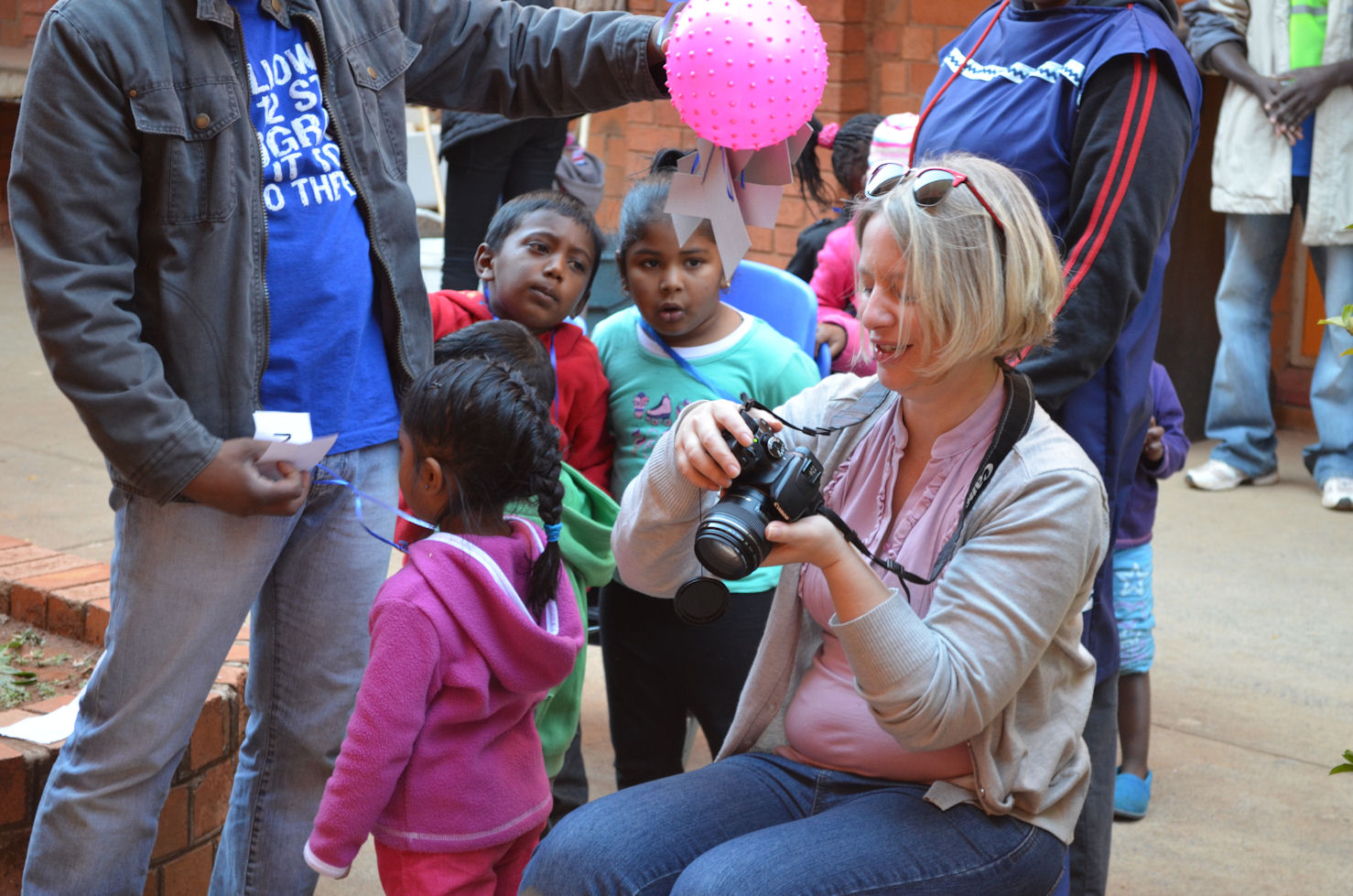 On Tuesday, a group of photographers from Ubuntu Help Portrait took photos of all the children, here the kids are looking for their beautiful pictures.